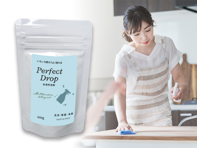 「Perfect Drop」が1本あれば、食器から衣類、自動車、厨房など幅広いところをキレイにできます!